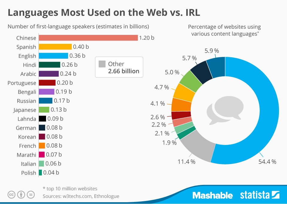 The web is heavily weighted to English (https://www.statista.com/chart/4140/low-diversity-of-languages-on-the-web-hinders-accessability)