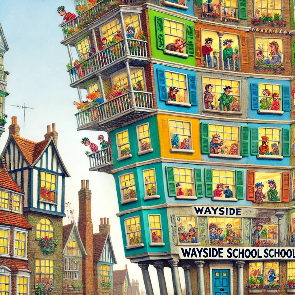 Wayside School is a series of short story cycle children’s books written by Louis Sachar. Titles in the series include Sideways Stories from Wayside School (1978), Wayside School Is Falling Down (1989), Wayside School Gets a Little Stranger (1995), and Wayside School Beneath the Cloud of Doom (2020). The books tell of a school where the contractor misread the blueprints and mistakenly built it sideways. As such the school was constructed as a 30-story skyscraper. The 19th floor was omitted from the plans.