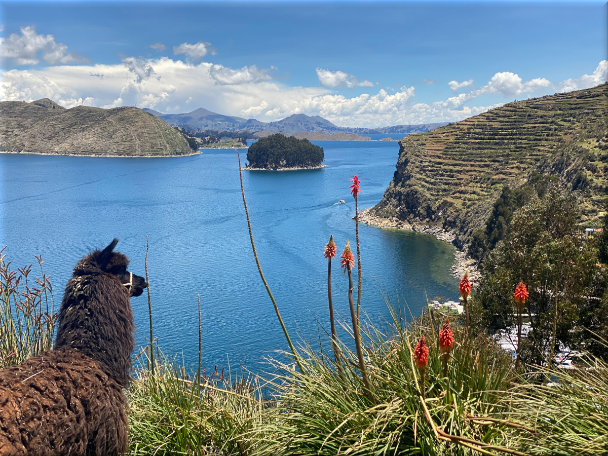 A view of Lake Titicaca and Chelleca island in the background. Alpacas are a common sight along the shores of the lake. By EEJCC – Own work, CC BY-SA 4.0, https://commons.wikimedia.org/w/index.php?curid=134367629A view of Lake Titicaca taken from the town of Copacabana, Bolivia By EEJCC – Own work, CC BY-SA 4.0, https://commons.wikimedia.org/w/index.php?curid=134366465