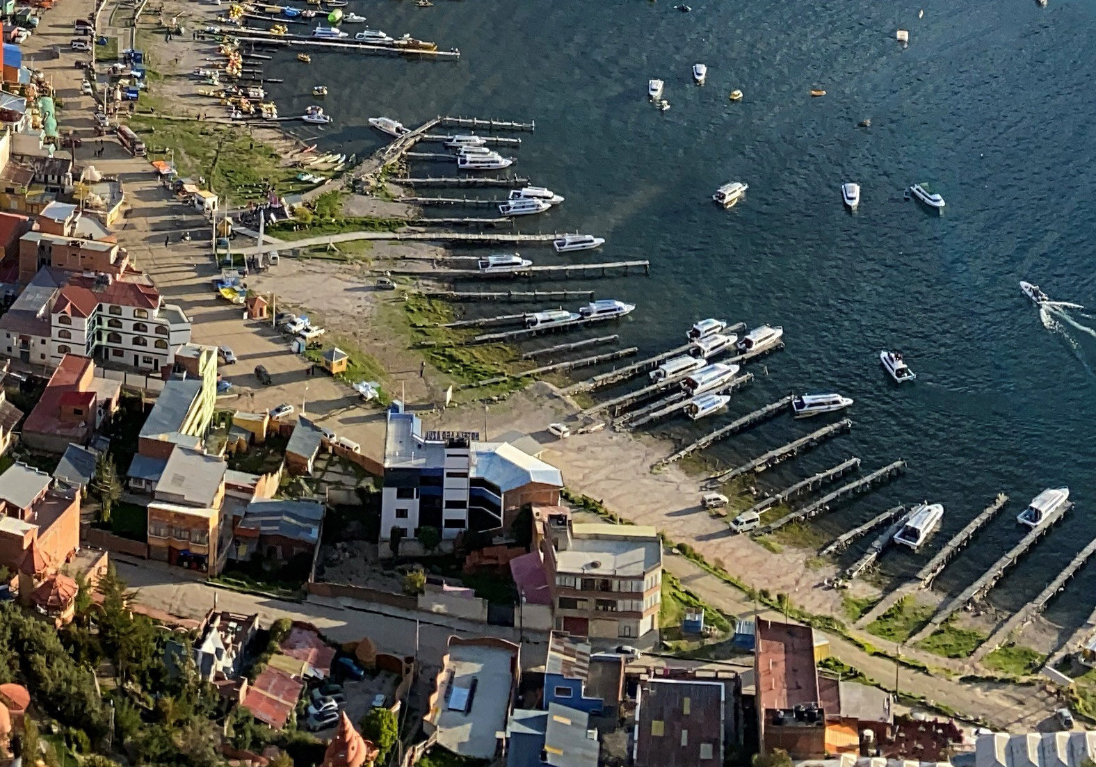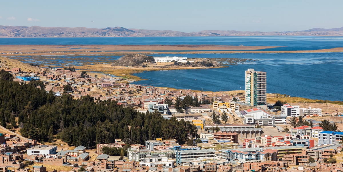 The city of Puno in Peru, the largest urban settlement on the lake By Diego Delso, CC BY-SA 4.0, https://commons.wikimedia.org/w/index.php?curid=43198640