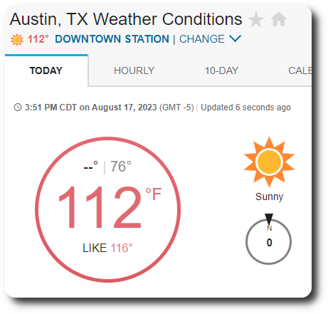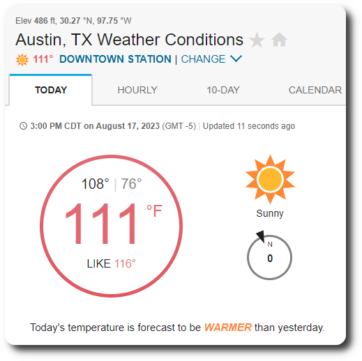 Weather Underground, Austin, Thursday, Aug 18th, 2023, 3:00pm.
