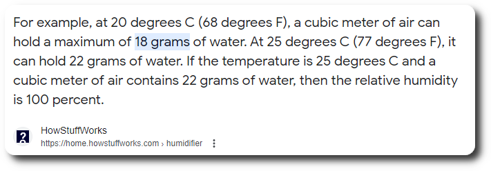 It’s pretty amazing how much water the air can hold. A function of pressure and temperature, but for example: