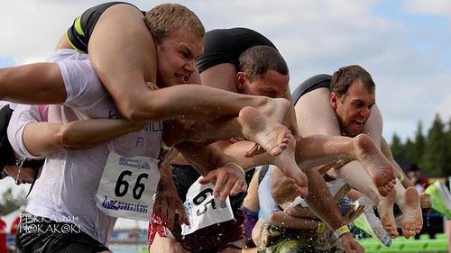 Confession: this has never been an Olympic sport. But I was recently talking to a yoga and cycling student of mine, and he informed me that he’s an American champion wife-carrier. He’s currently training for the world championships in Finland. And it is simply amazing. For 253.5 meters you carry a woman, who weighs at least 49 kilograms—if underweight she’s burdened with a rucksack—across two dry obstacles and one water obstacle. Prizes are not only given for the best time, but also for costumes and the most entertaining couple. Bonus: you don’t actually have to be married. An official rule is that you must enjoy yourself. How this incredible sport has slipped by the Olympics committee is beyond me, but obviously, it’s time that changed.