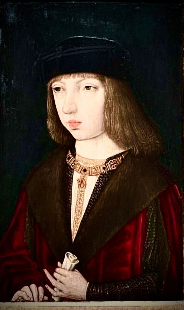 In 1496, 16-year-old Joanna was betrothed to 18-year-old Philip of Austria, in the Low Countries. Philip’s parents were Maximilian I, Holy Roman Emperor, and his first wife, Duchess Mary of Burgundy. The marriage was one of a set of family alliances between the Habsburgs and the Trastámaras designed to strengthen both against growing French power.