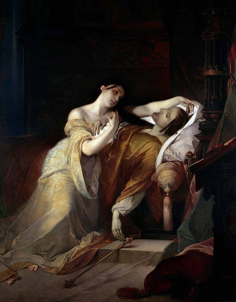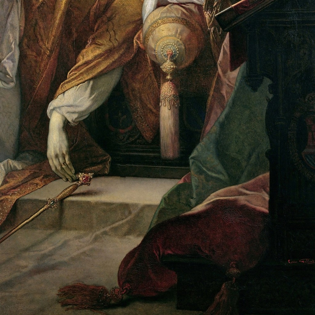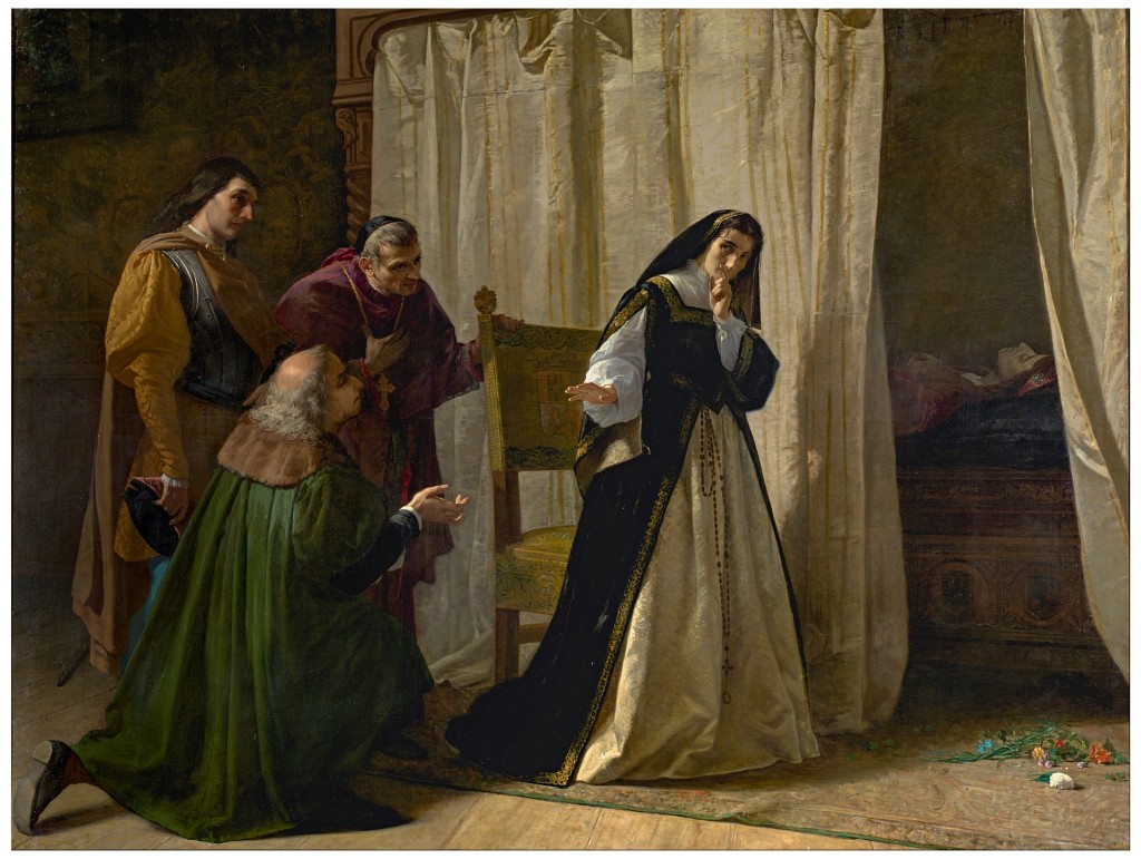 Joanna the Mad Holding Vigil over the Coffin of Her Late Husband, Philip the Handsome. Juana la Loca de Pradilla by Francisco Pradilla Ortiz, 1877.