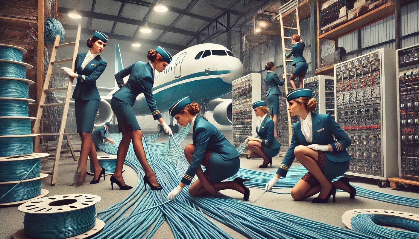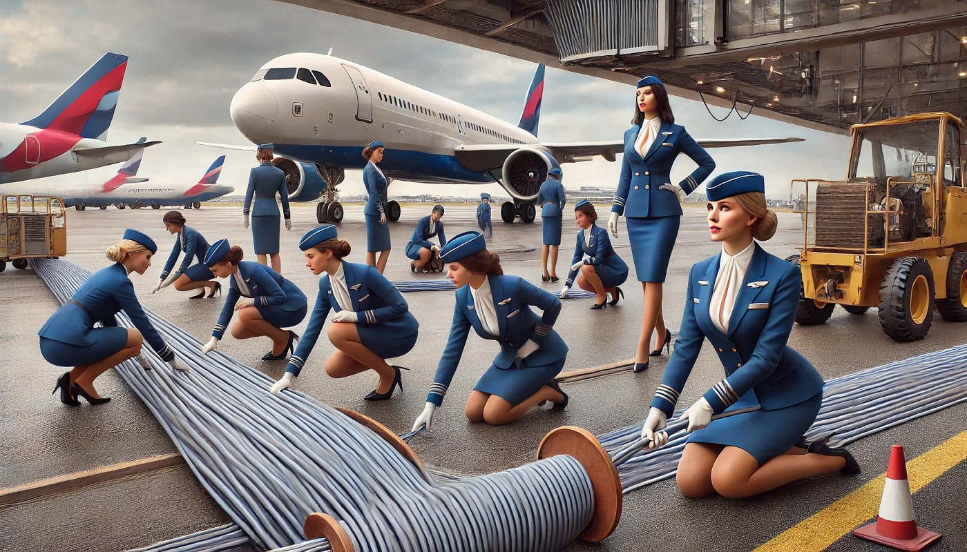 It involves airline stewardesses who have part time jobs working for Google Fiber, laying cable.