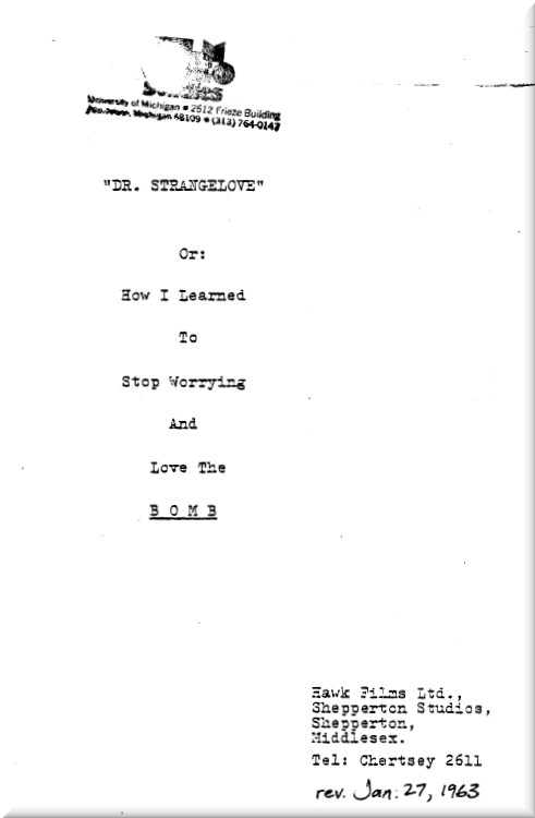[ed. note: I was convinced that Col. Ripper was described as “barking mad” at some point, but the actual screenplay is devoid of the word “barking”.]