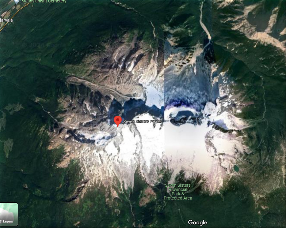 Seven Sisters Peaks is a 2,747-metre (9,012-foot) multi-summit massif located in the Bulkley Ranges of the Interior Mountains in British Columbia, Canada. The massif is situated within Seven Sisters Provincial Park and Protected Area, 10 km (6 mi) southeast of Cedarvale, south of Orion Peak, and surrounded by Seven Sisters Glacier.