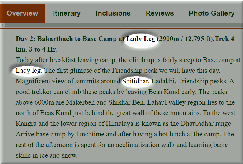 Day 01: Drive from Manali to Dhundi and trek to Bakar Thach (10700 ft.) Day 02: Acclimatization day Day 03: Summit Attempts (15500 ft.) Day 04: Reserve day for Summit attempts and back to Bakarthach Camp Day 05: Trek from akar Thach to Dhundi and back to Manali