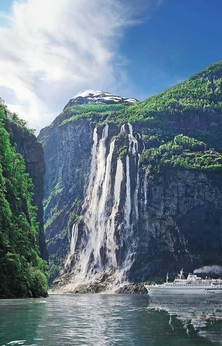 The Seven Sisters Waterfall (De syv søstrene) is one of the most famous waterfalls in Norway, located along the Geirangerfjord in the Sunnmøre region. There is indeed a mythology associated with this spectacular natural wonder.