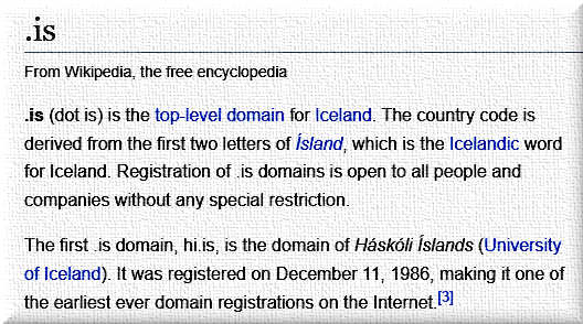- Top level domain for Iceland is is. [2]