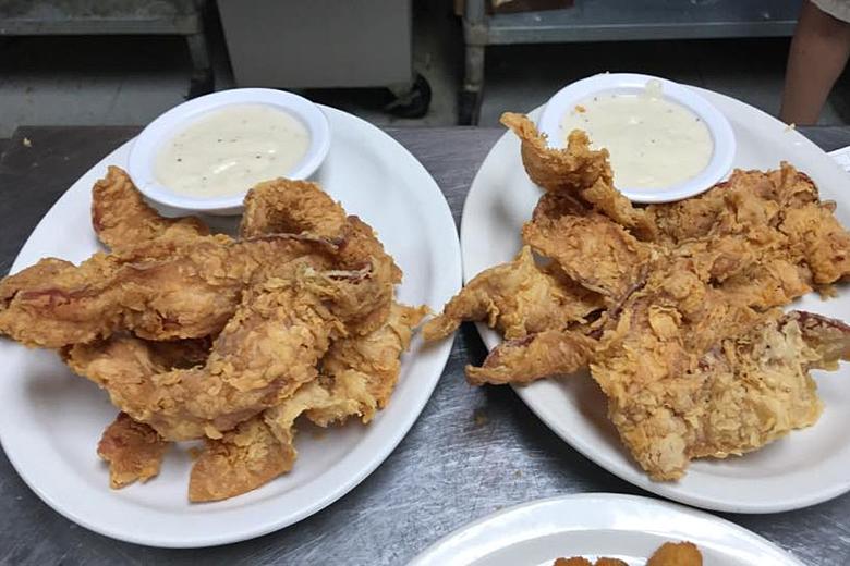Sodolak’s version serves six strips of bacon, battered and fried, with a bowl of cream gravy.