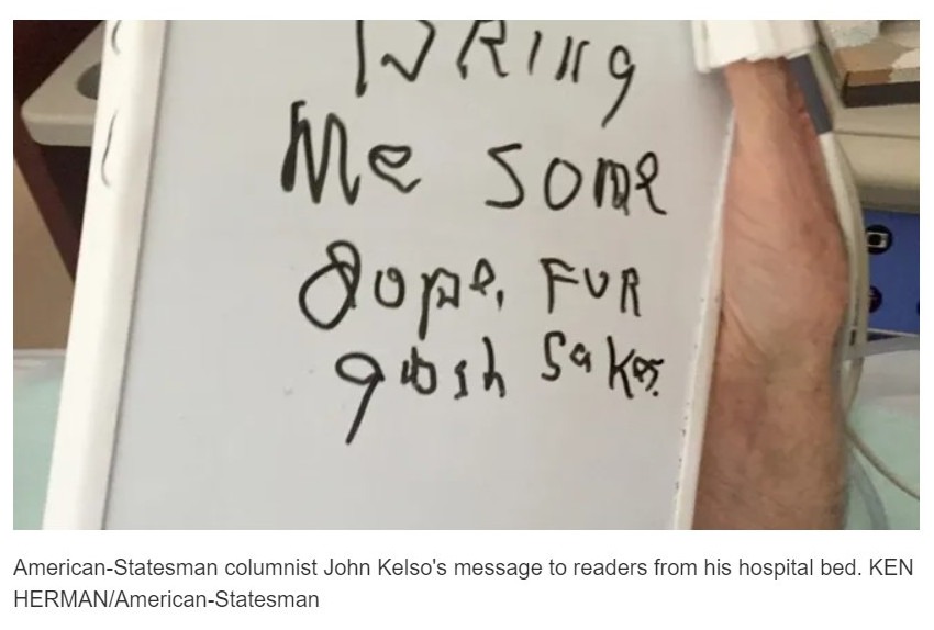 John Kelso, the bard of South Austin, an involuntary native and vigorous tormentor of Oklahoma, the author of three humor books and a four-decade fixture in the pages of the Austin American-Statesman as well as hearts of his readers and newsroom colleagues, died Friday.