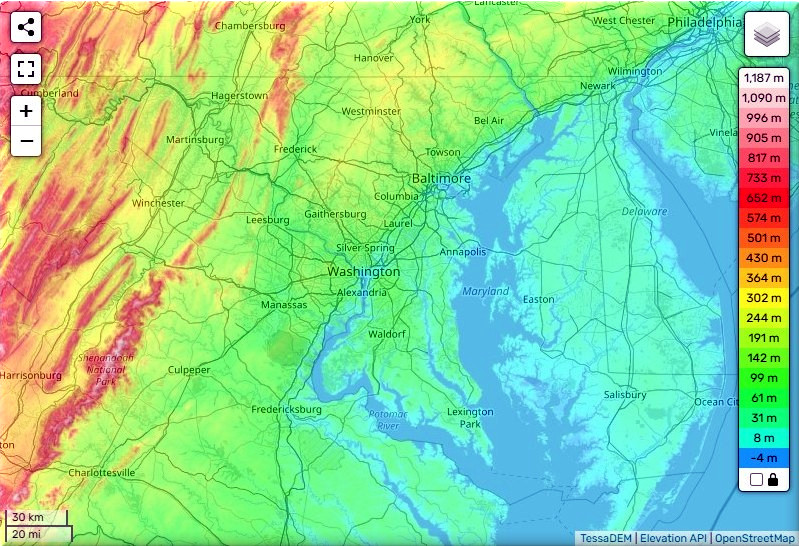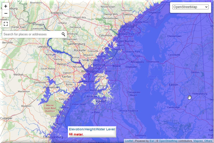 10 feet is not nearly enough catastrophe for us. Let’s check out what 66m looks like (floodmap.net).