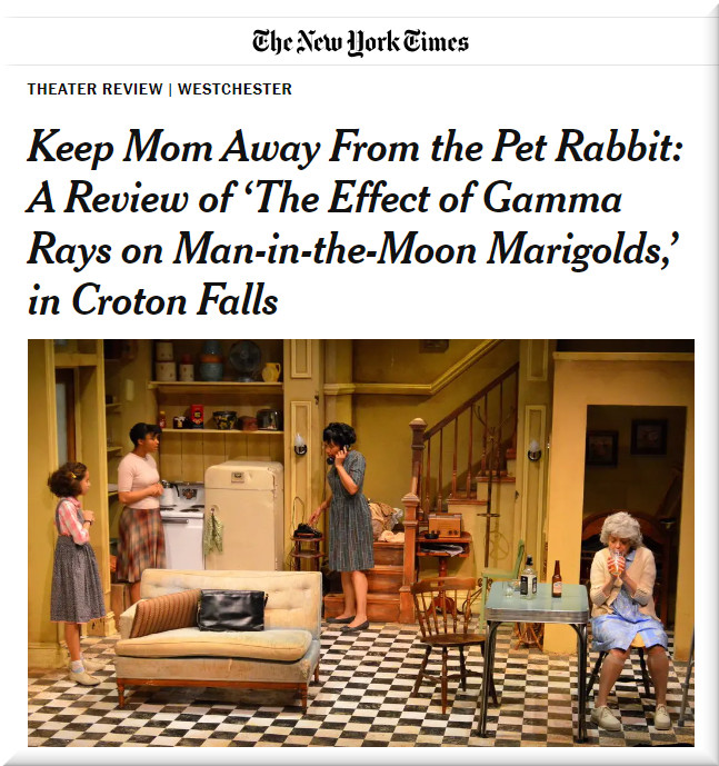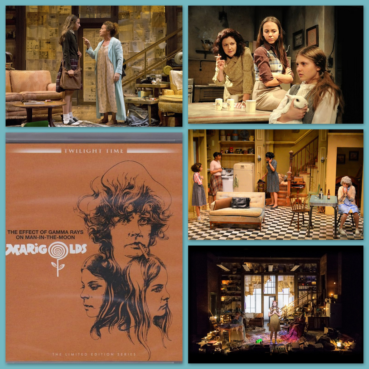 Shy Matilda Hunsdorfer, nicknamed Tillie, prepares an experiment involving marigolds raised from seeds exposed to radioactivity for her science fair. She is, however, constantly thwarted by her mother Beatrice, who is self-centered and abusive, and by her extroverted and unstable sister Ruth, who submits to her mother’s will. Over the course of the play, Beatrice constantly tries to stamp out any opportunities Tillie has of succeeding, due to her own lack of success in life. As the play progresses, the paths of the three characters diverge: Ruth has a nervous collapse while attempting to stand up to Beatrice, who, driven to the verge of insanity by her deep-seated enmity, impulsively kills the girls’ pet rabbit Peter and wallows in her own perceived insignificance. Tillie meanwhile (much like her project’s deformed yet beautiful, hardy marigolds) wins the science fair through sheer perseverance.