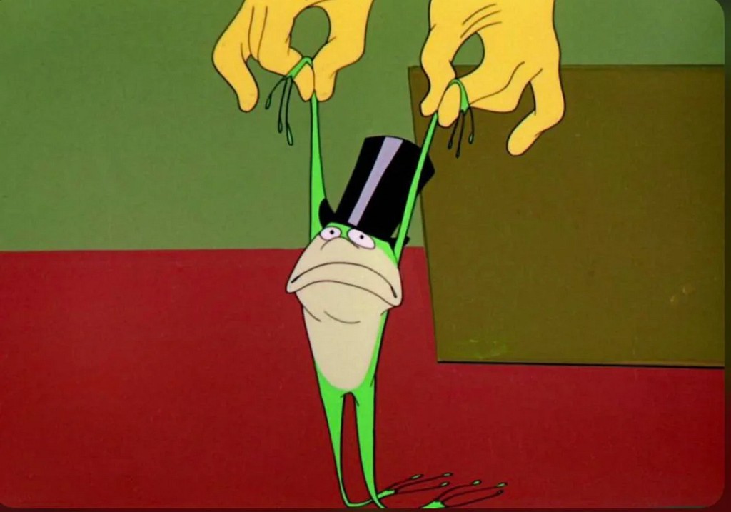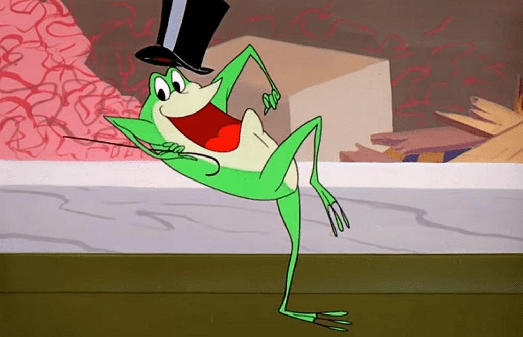Michigan Jackson Frog is an animated cartoon character from the Warner Bros.’ Merrie Melodies film series. Originally a one-shot character, his only appearance during the original run of the Merrie Melodies series was as the star of the One Froggy Evening short film (December 31, 1955), written by Michael Maltese and directed by Chuck Jones.