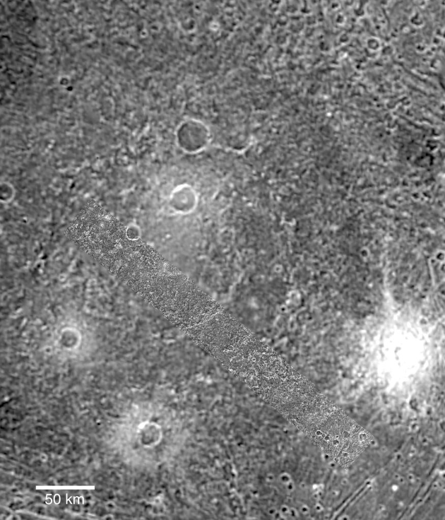 By NASA/JPL-Caltech/SwRI/MSSS/Kevin M. Gill – Tros Crater, Ganymede – PJ34-1 – Detail – Map Projected, CC BY 2.0