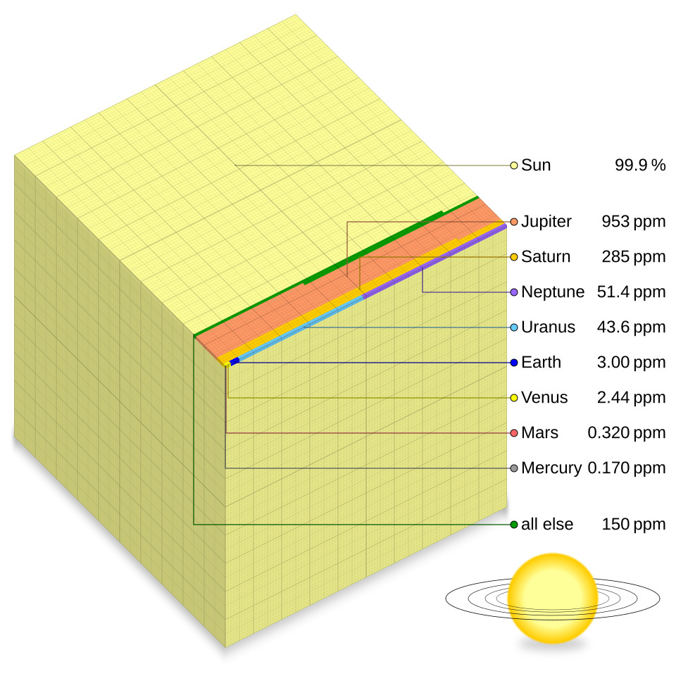 (top left, clockwise) By Cmglee – Own work, CC BY-SA 4.0, By Das steinerne Herz, translation by Szczureq – File:Sun vs planets.svg, CC BY-SA 3.0 By Das steinerne Herz, translation by Szczureq – File:Masses of the planets.svg, CC BY-SA 3.0 By Das steinerne Herz, translation by Szczureq – File:Masses of Solid Solar System bodies.svg, CC BY-SA 3.0