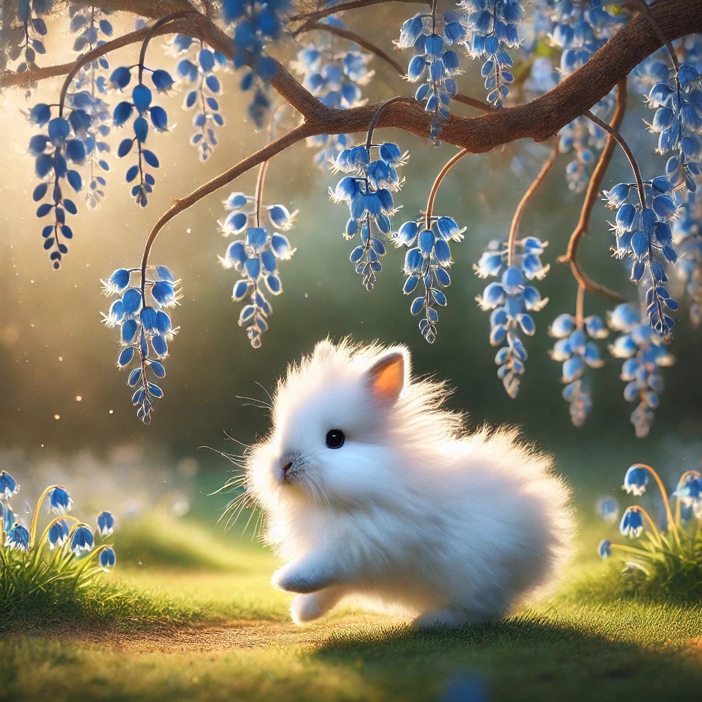 Под южно дърво, цъфтящо в синьо, бягаше малко пухкаво зайче (“Under a southern tree, blooming in blue, ran a little fluffy bunny”)