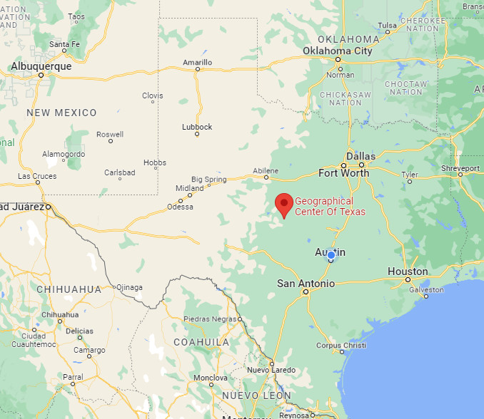The Geographic Center of Texas is conveniently located in the middle of Texas.
