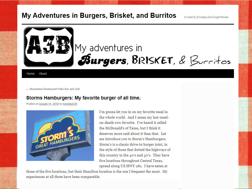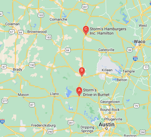 Traveling from Austin to Brady, you have three opportunities to visit Storms, which has one of the best hamburgers on the planet.
