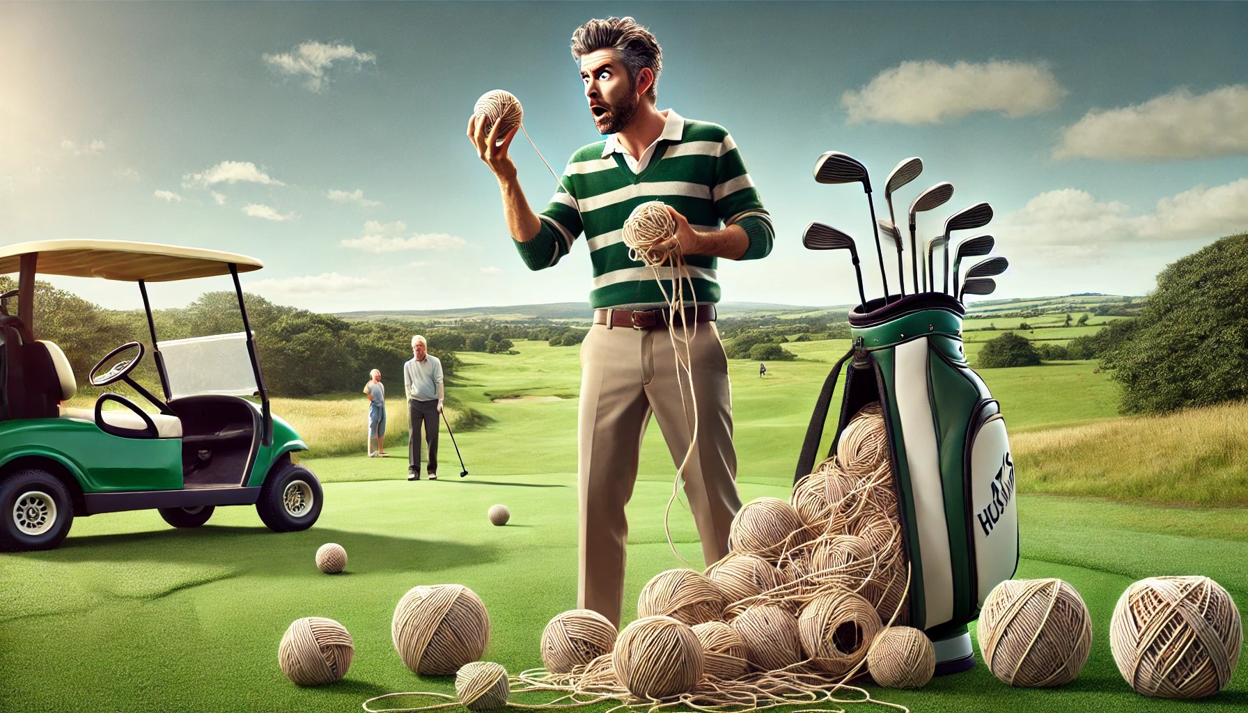 p.s. He says the twine is interfering with his golf game. Give me a break.