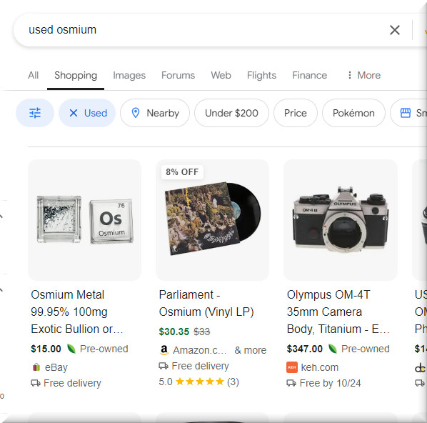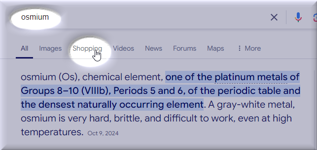 Anyhow….This circuitous journey leads us to OSMIUM. The Os. Big O.