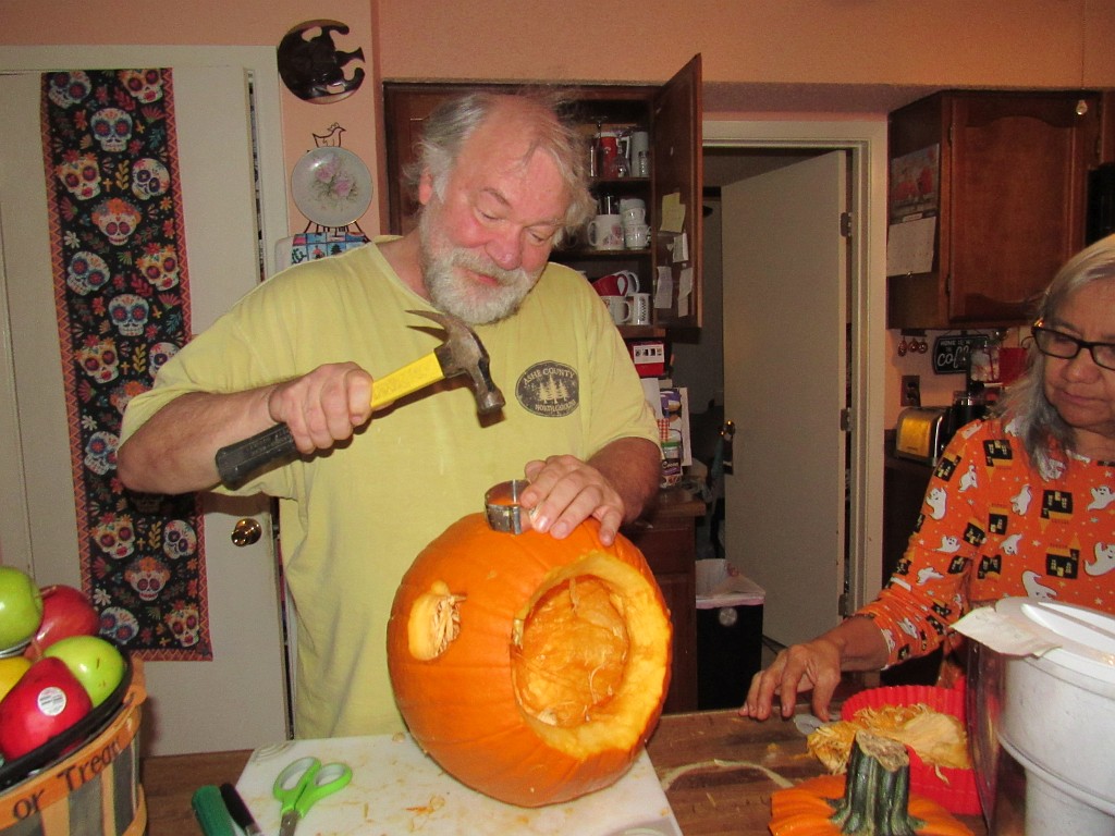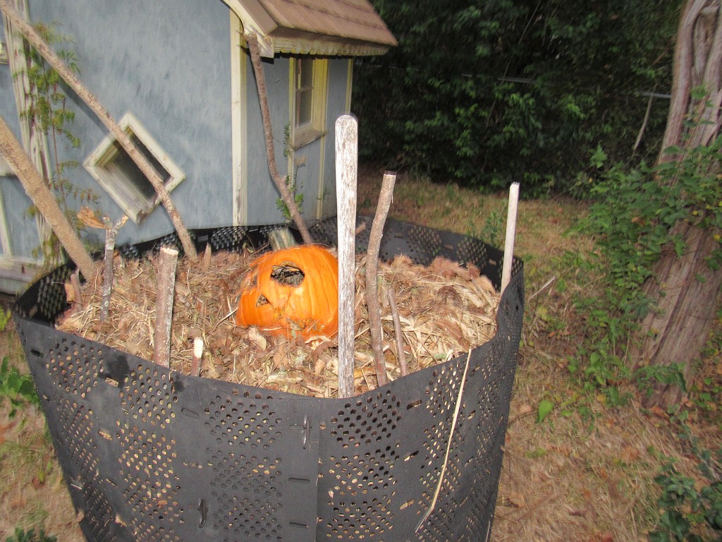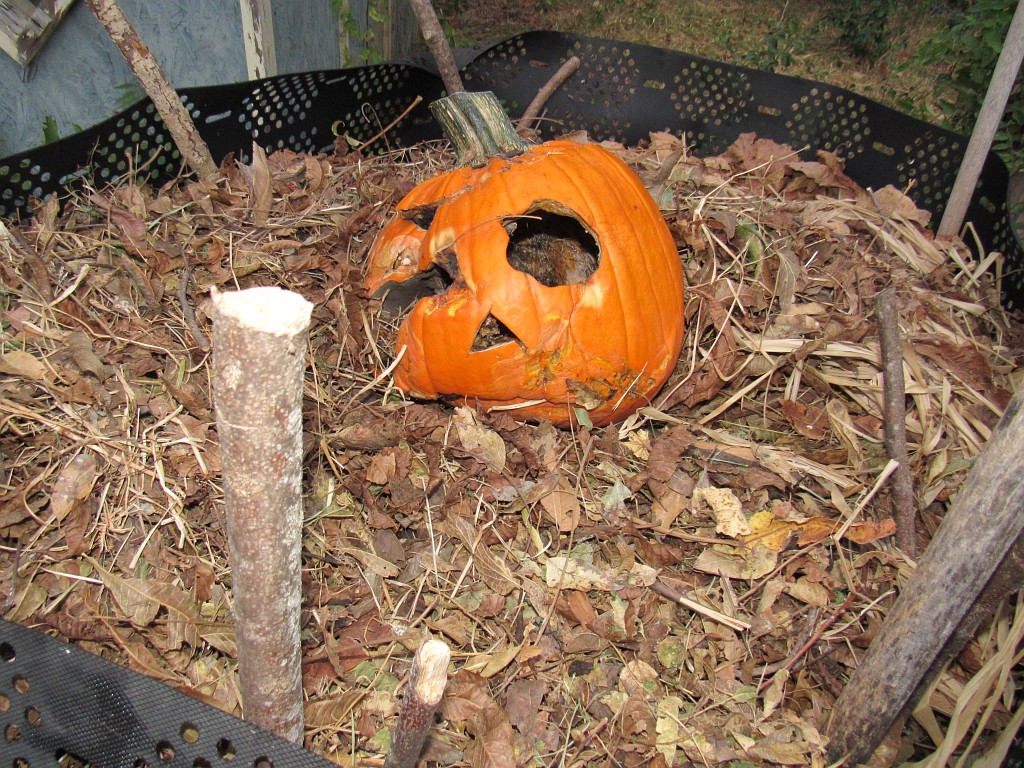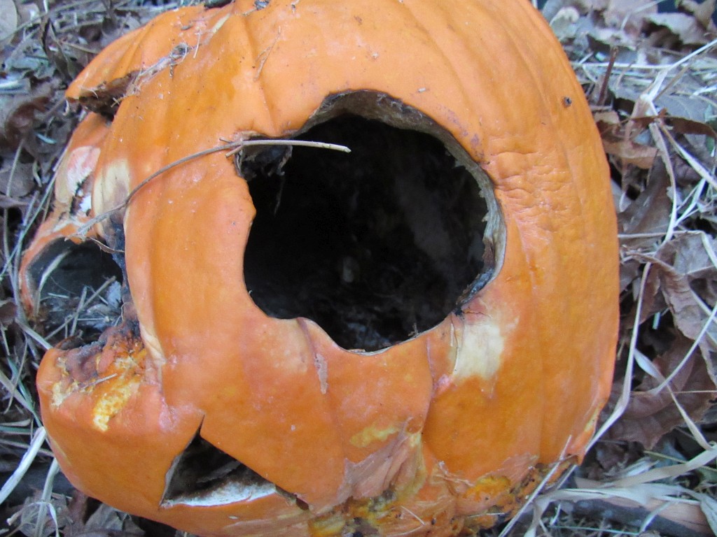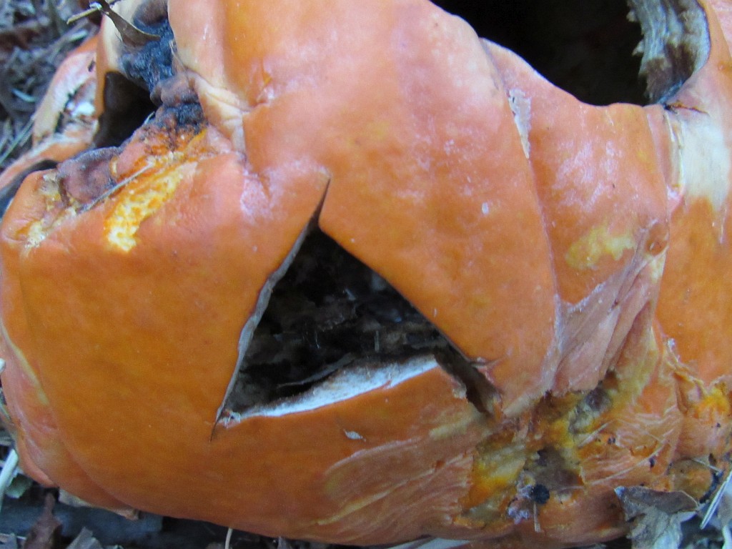 Surrendering to squirrels: Pumpkins who allowed themselves to be eaten by squirrels too early in the season without putting up a fight—Pumpkin Hell it is!