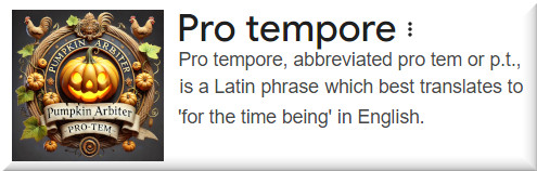 Elder G has agreed to act as Pumpkin Arbiter Pro Tempura, pending the upcoming WLBOTT conclave.