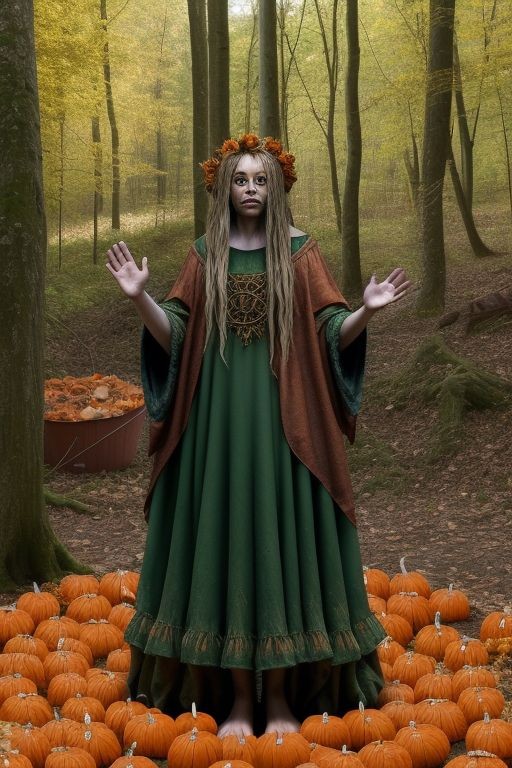 The goddess of this realm is Hollow Hel, a pumpkin goddess who is half-rotted and half-glowing.