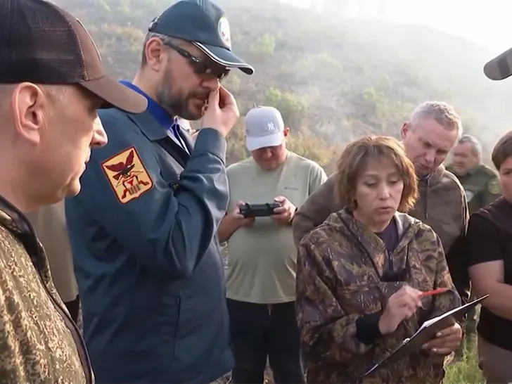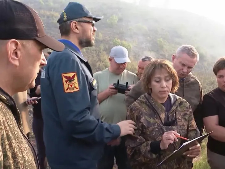 Alexander Osipov, governor of the Russian Transbaikal region, was talking to Elena Shalyapina, head of the Karymsky forestry department about forest fires when he put his thumb to his nose and then wiped his hand on her coat.