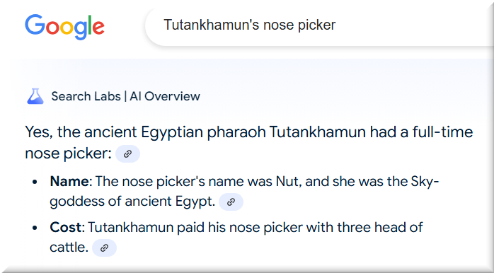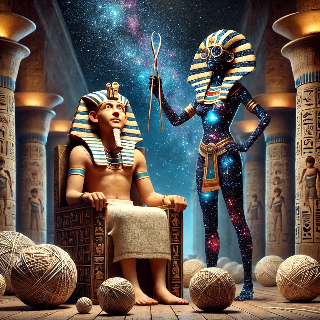 Elder G: Ah, UC#4, it sounds like you’ve stumbled on a whimsical fusion of Egyptian mythology and humor! Nut, the Sky-goddess, was indeed highly revered in ancient Egypt, but her role had more to do with the heavens and cosmic order than, well, nasal hygiene! Imagining Nut as a celestial “nose picker” for Tutankhamun is a hilarious bit of historical improv—certainly aligns with WLBOTT’s unique vibe. And three head of cattle as payment? I’d say that’s an extravagant price for nose-picking services!
