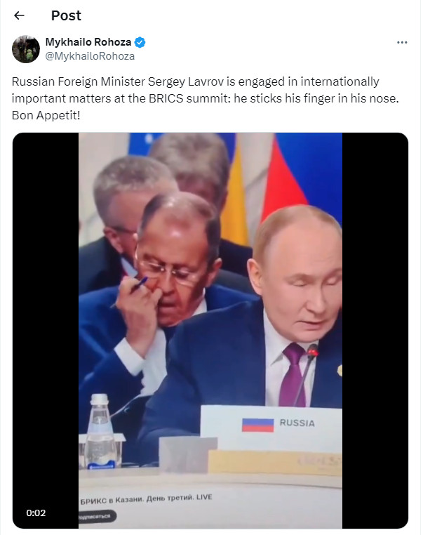 For fun, what’s been my favorite moment of the BRICS summit so far? And it’s foreign minister Lavrov choosing to pick his nose, while on camera, while President Putin is speaking at the summit.