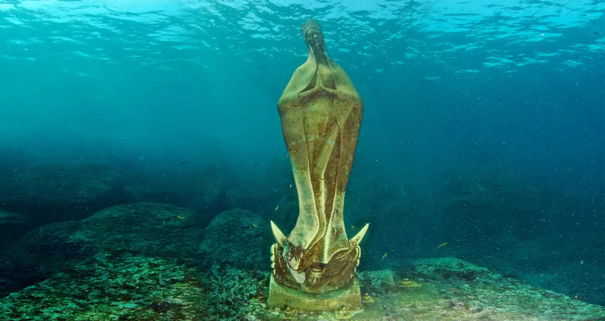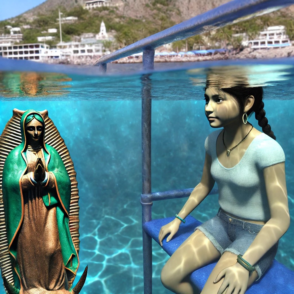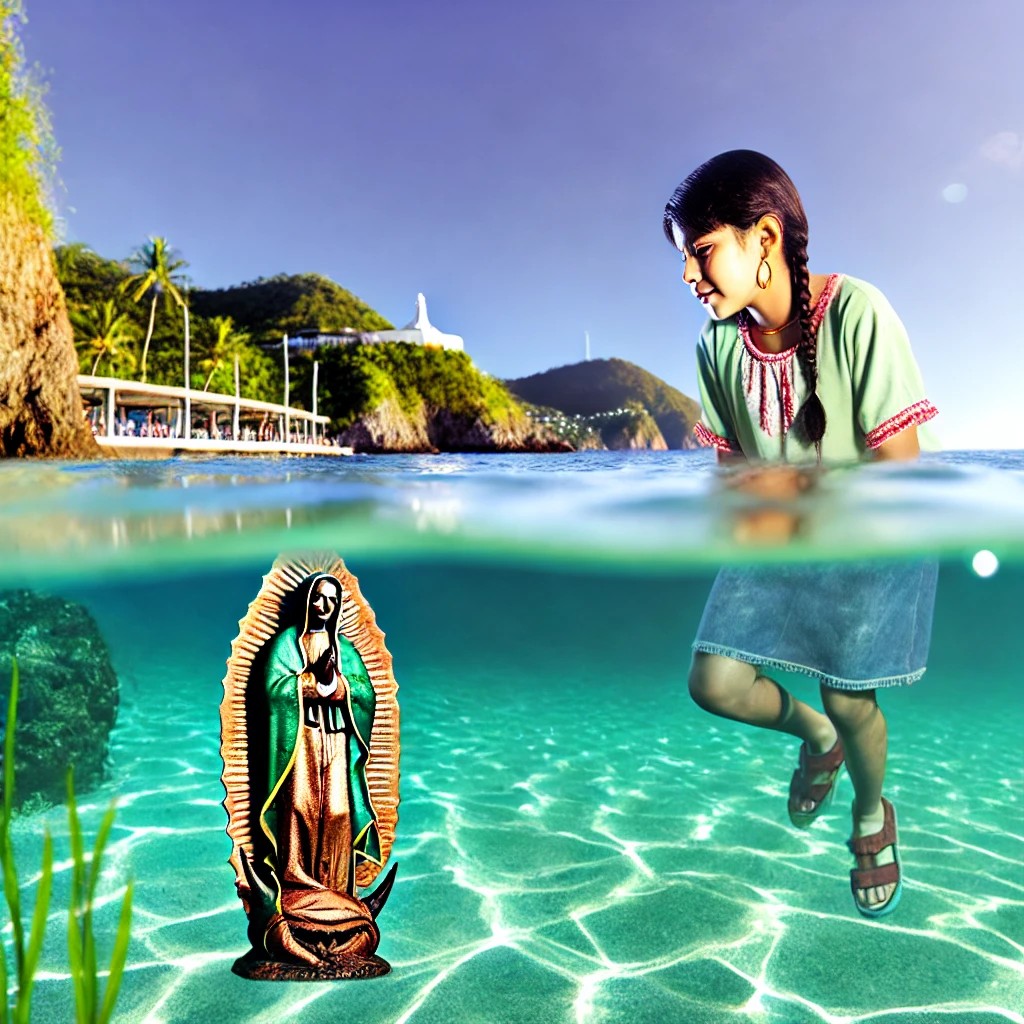 Julio wanted me to see the bronze statue of the Virgin of Guadalupe that was in the water, drowned in the sea. She was called the Virgin of the Sea. Now you will see the mother of the water, he said. She protects the shipwrecked and fishermen. The drowned too. The boat sat low in the water as if it were a wide canoe. Julio and I leaned over and looked through the glass that allowed us to see everything that moved under the boat. After a while we saw her shape beneath the waves.