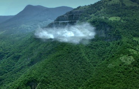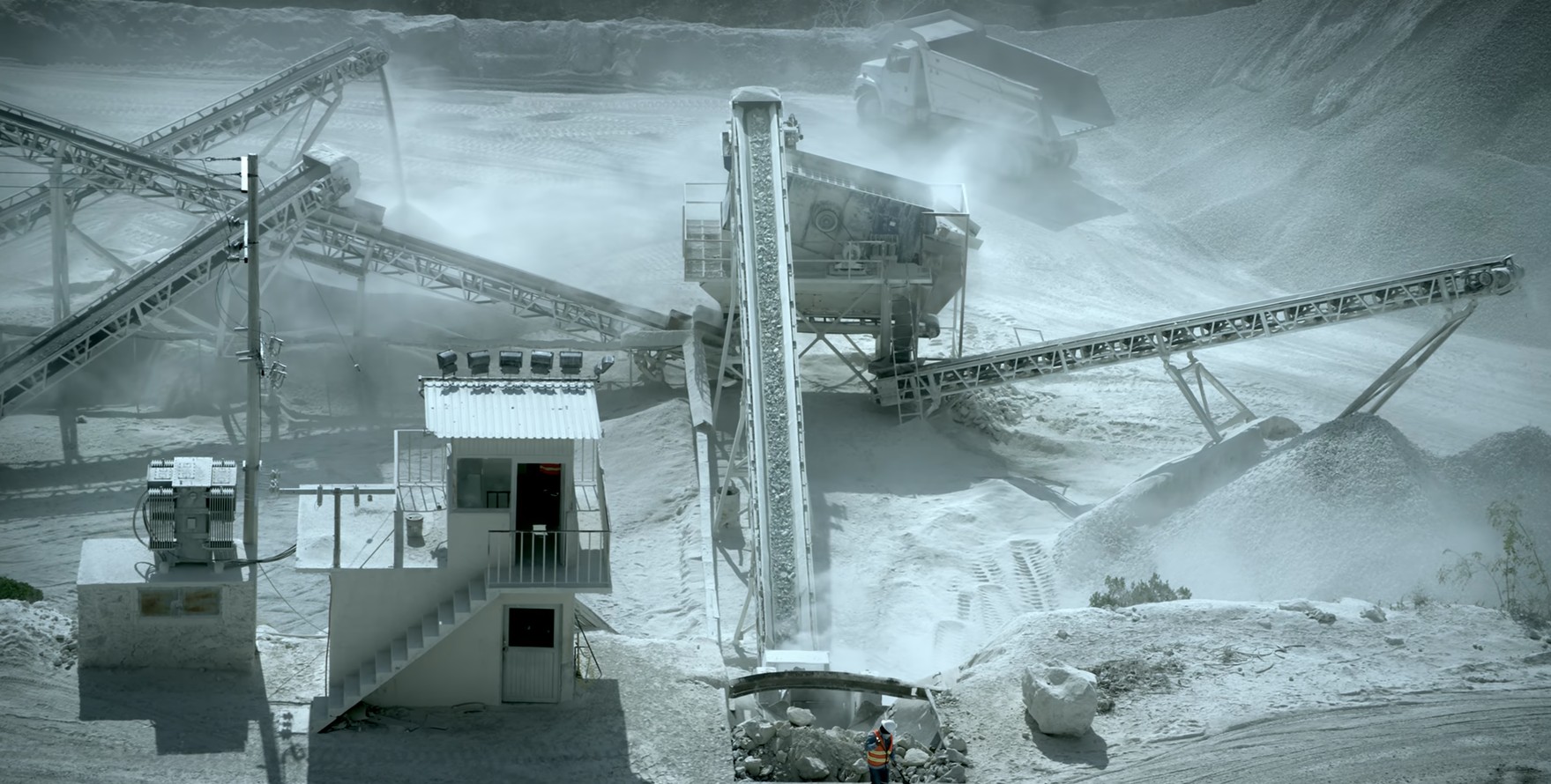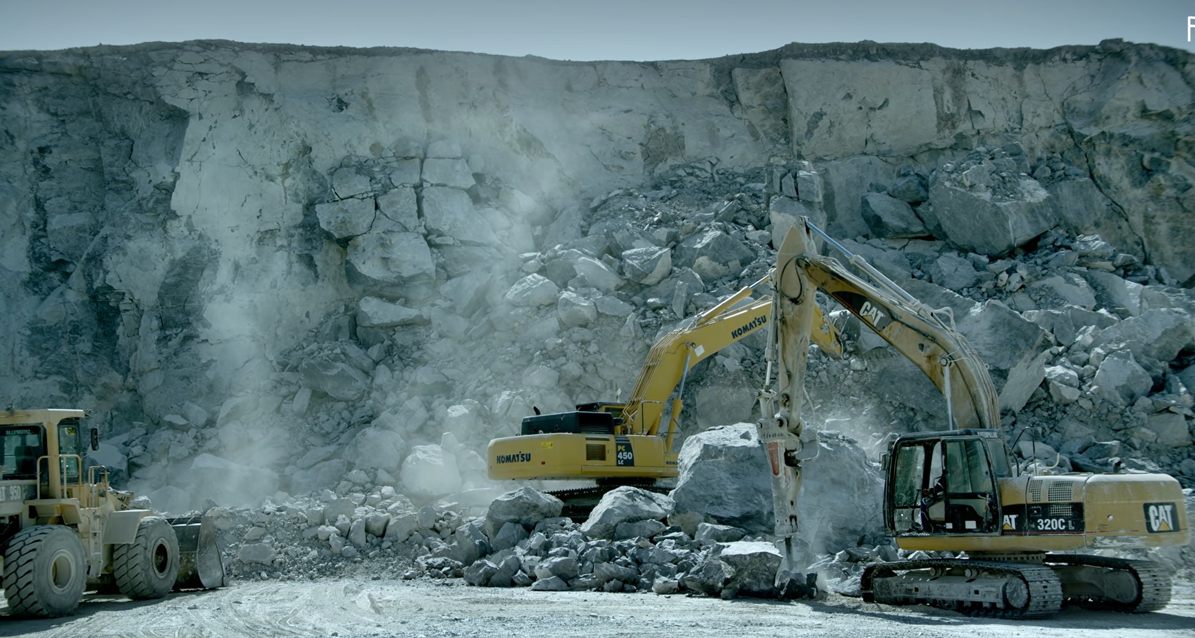 In the opening scenes, we see a line of ominous black SUVs snaking through a mountain road. A mountain in the distance is half eaten away, being quarried for limestone. As the SUVs pass, a huge block of the mountain is dynamited in a huge explosion.