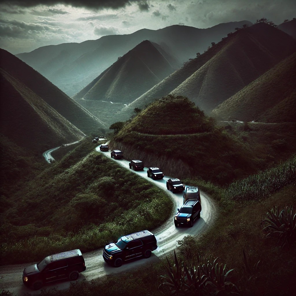 In Prayers for the Stolen, the cartel members drive large, intimidating SUVs and Escalades – black with dark tinted windows. These vehicles symbolize both power and danger in the story, creating an atmosphere of dread for the townspeople as they hear them approaching.