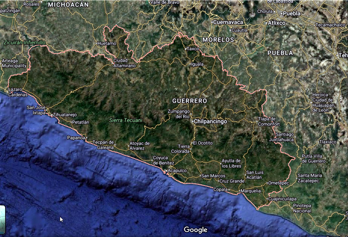 Guerrero is one of the 32 states that comprise the 32 Federal Entities of Mexico. It is divided into 81 municipalities. The state has a population of about 3.5 million people. It is located in southwest Mexico and is bordered by the states of Michoacán to the north and west, the State of Mexico and Morelos to the north, Puebla to the northeast and Oaxaca to the east. In addition to the capital city, Chilpancingo and the largest city Acapulco, other cities in Guerrero include Petatlán, Ciudad Altamirano, Taxco, Iguala, Ixtapa, and Zihuatanejo. Today, it is home to a number of indigenous communities, including the Nahuas, Mixtecs, Tlapanecs, Amuzgos, and formerly Cuitlatecs. It is also home to communities of Afro-Mexicans in the Costa Chica region.