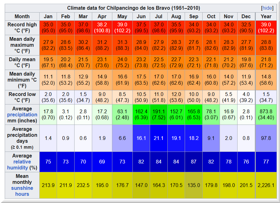 Chilpancingo de los Bravo (commonly shortened to Chilpancingo) is the capital and second-largest city of the Mexican state of Guerrero. In 2010 it had a population of 187,251 people. The municipality has an area of 2,338.4 km2 (902.9 sq mi) in the south-central part of the state, situated in the Sierra Madre del Sur mountains, on the bank of the Huacapa River. The city is on Federal Highway 95, which connects Acapulco to Mexico City.
