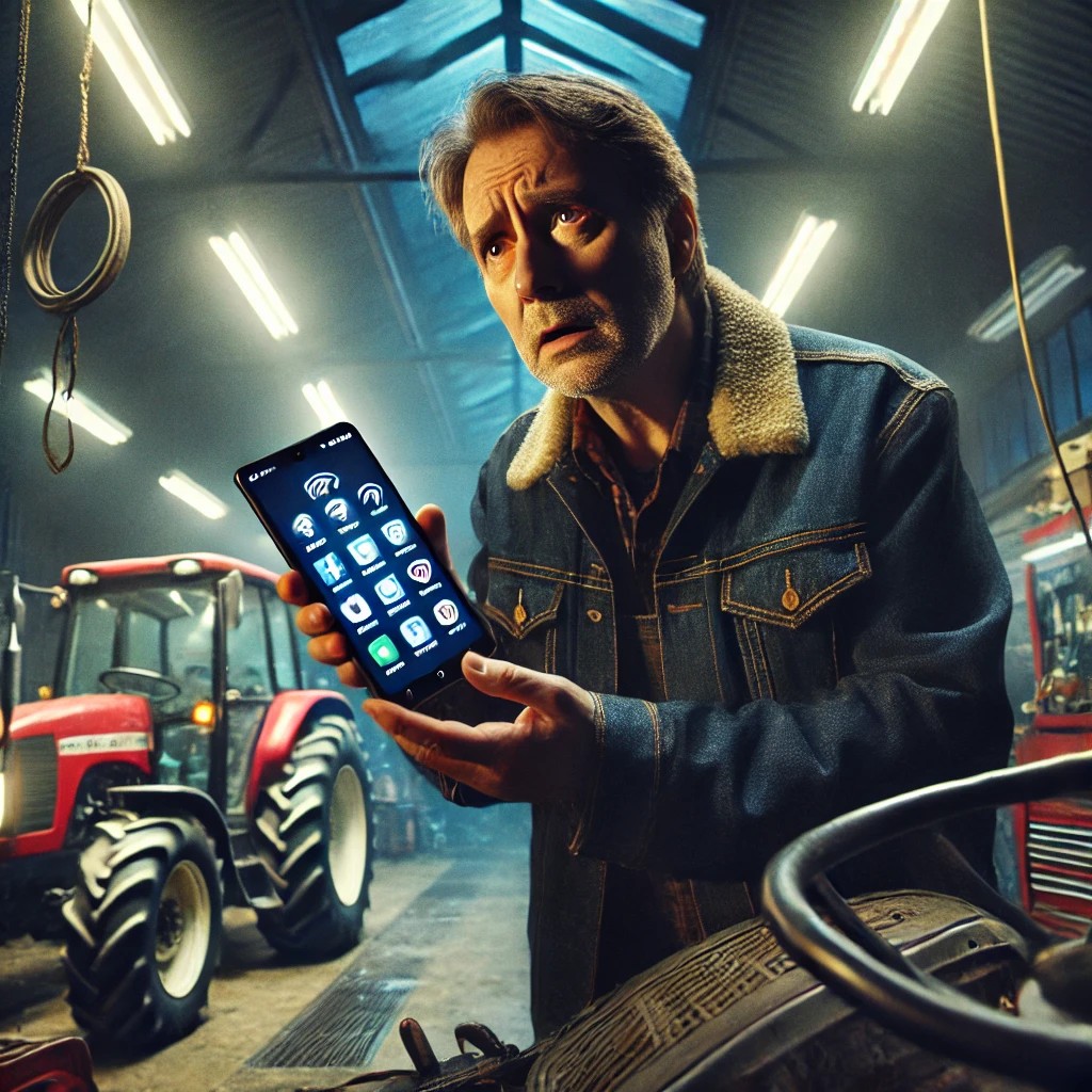 I was at a tractor repair garage and showroom, in the middle of the night. I needed to call my brother Ken, but my crappy cell phone wasn’t working (a recurring theme in my dreams). The phone had no contact list, and an impossible user interface that keep steering me to ads.