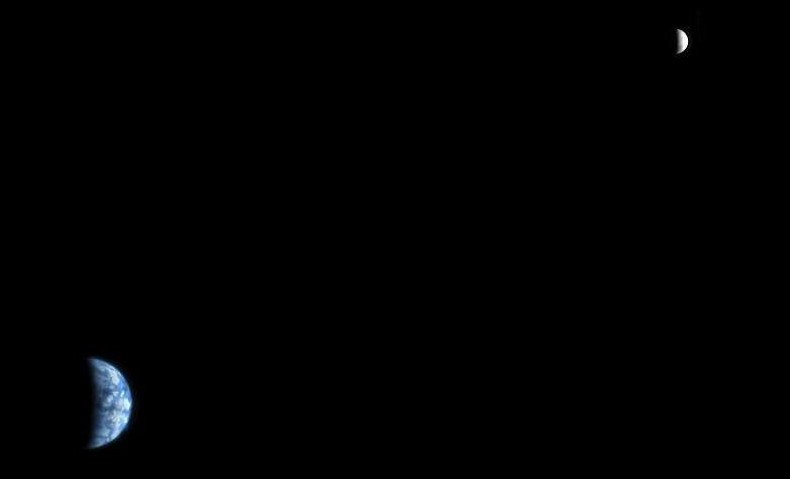 The Earth and Moon, as seen from Mars.