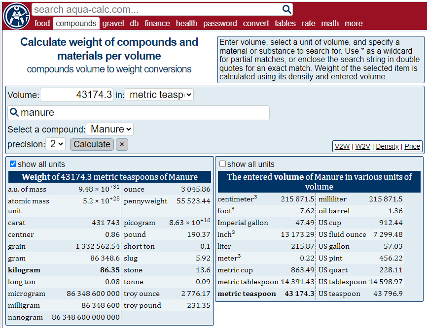 Or about the equivalent number of metric teaspoons: