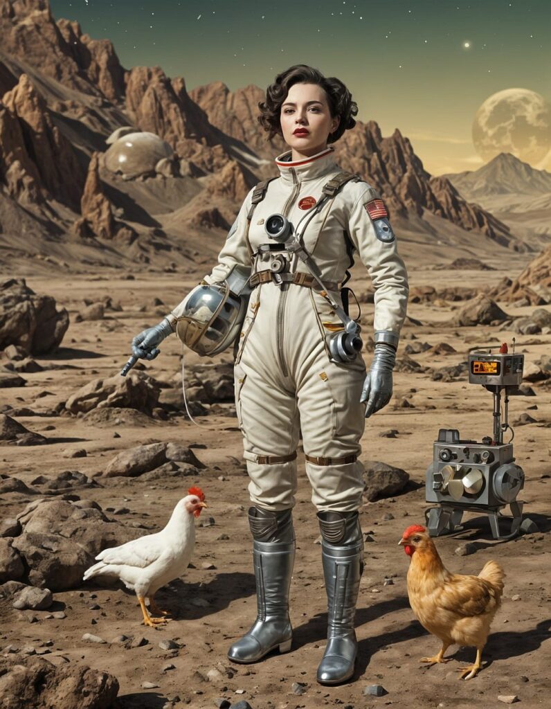 Retro-Futuristic Visionary | Lunar Atmosphere Pioneer | Chicken Space Suit Enthusiast