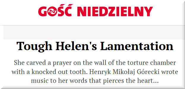 Helena Wanda Błażusiakówna (born 4 February 1926, died 25 July 1999) was a Polish girl whose prayer, scratched on a cell wall during arrest by Nazis in 1944, was set to music by Henryk Górecki in his Symphony No. 3 Sorrowful Songs.