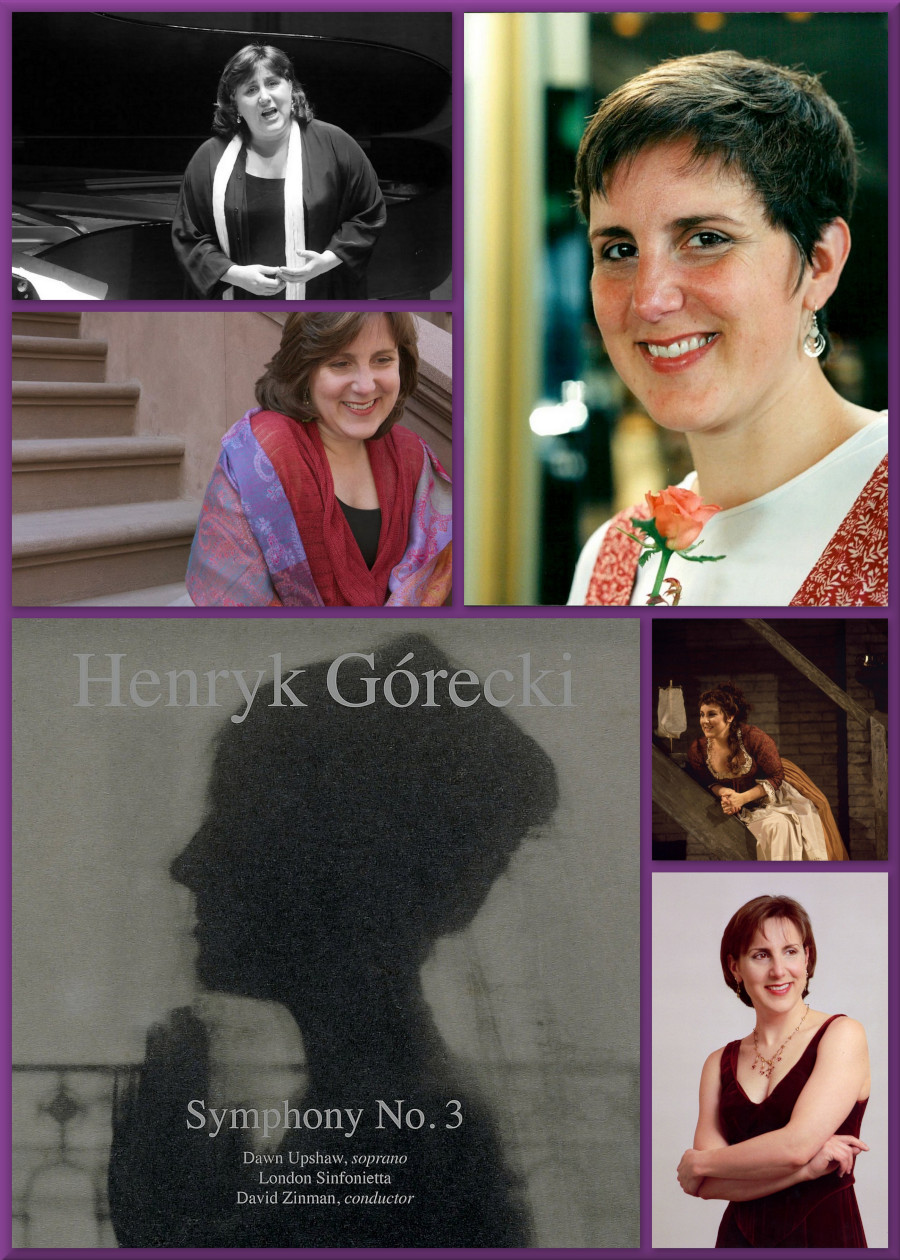 Dawn Upshaw (born July 17, 1960) is an American soprano. She is the recipient of several Grammy Awards and has released a number of Edison Award-winning discs; she performs both opera and art song, and her repertoire spans Baroque to contemporary.