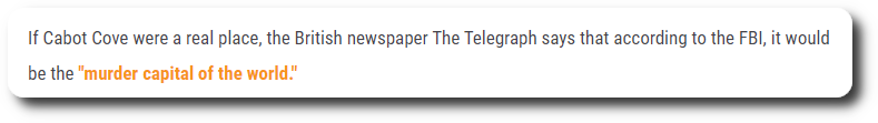 Speaking of Cabot Cove, please use caution if planning to visit.