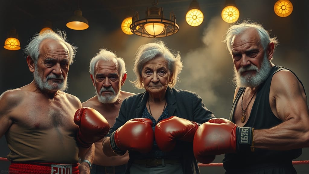 Round 1: Eliot opens with a cryptic strategy, confusing Will and Buckley by quoting The Waste Land. O’Hair rushes Buckley with pure determination, but Buckley counters with unexpected agility, quipping about her atheism mid-punch. Will, meanwhile, hesitates, analyzing everyone’s fighting styles for a future op-ed.