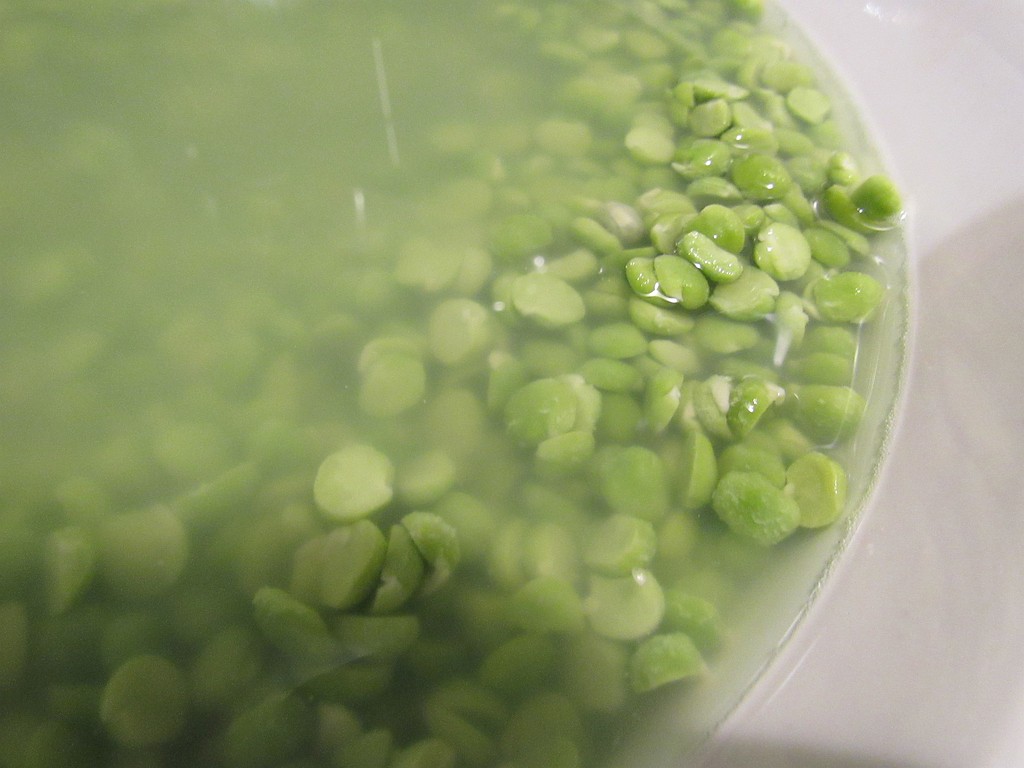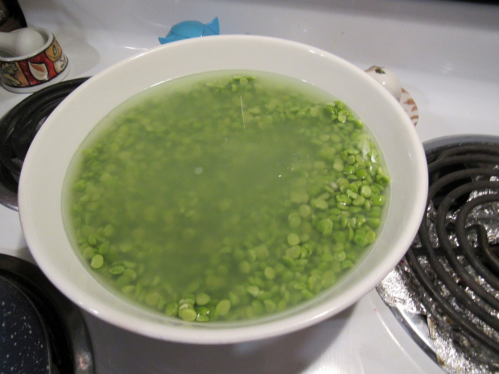 - Rinse and place the peas in a deep, large saucepan. Cover with cool water and leave overnight or for 4-6 hours.