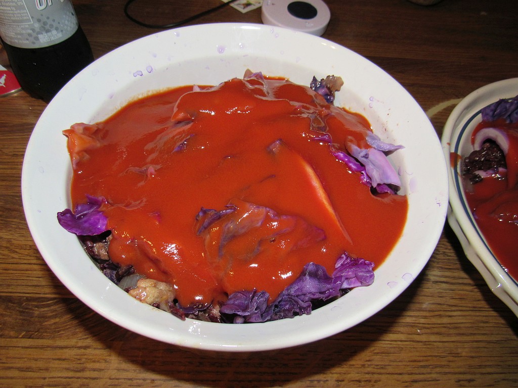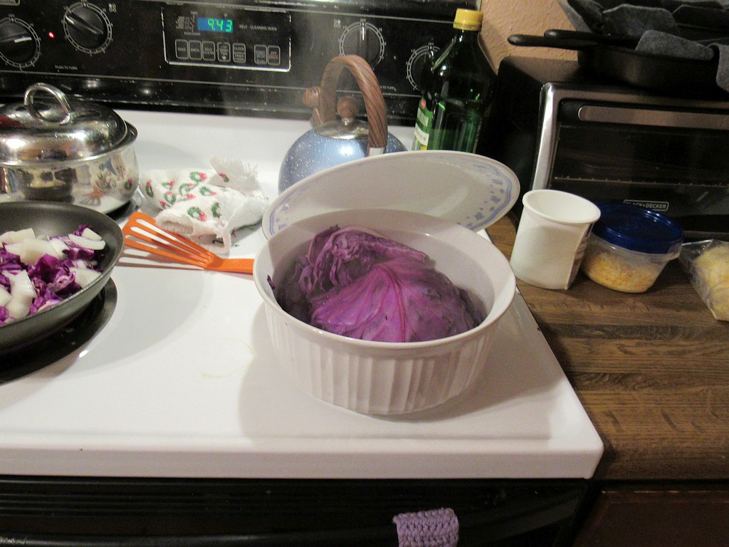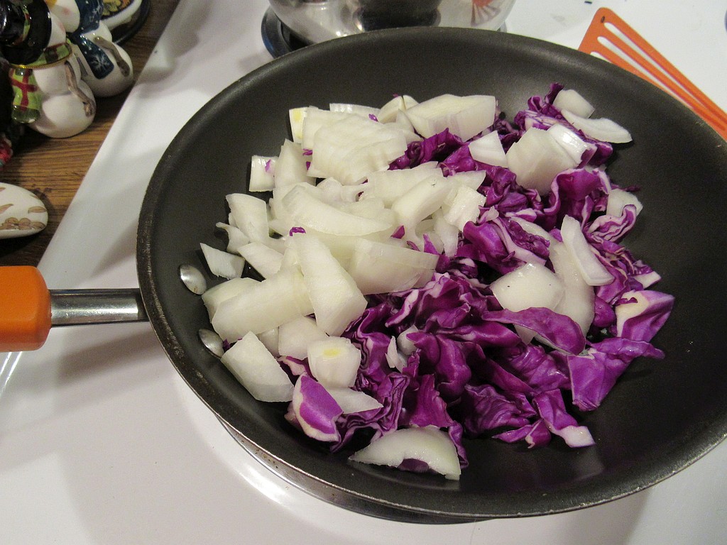 - 1 head red cabbage (reserve a cup of chopped cabbage)