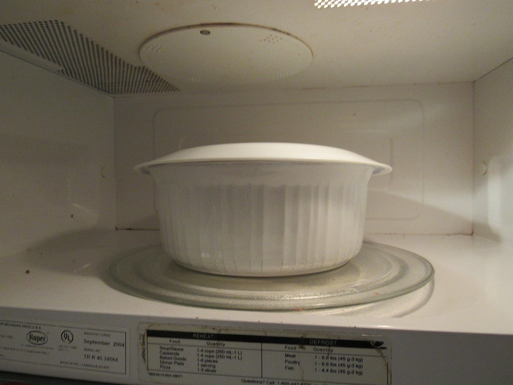 - Place whole head of cabbage (minus the reserved cup) into a covered bowl and microwave for about 5 minutes. Keep it covered for another 5 minutes. The cabbage will be pliable.