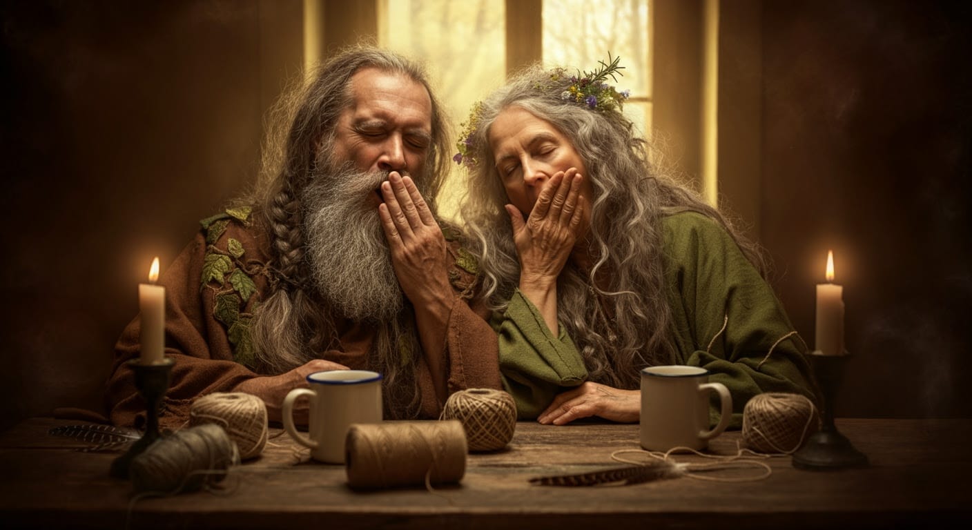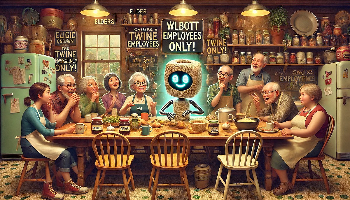 The elders exchange glances, each suppressing a grin. Clearly, they’re weighing the entertainment value of a twine emergency against the wrath of Sally.